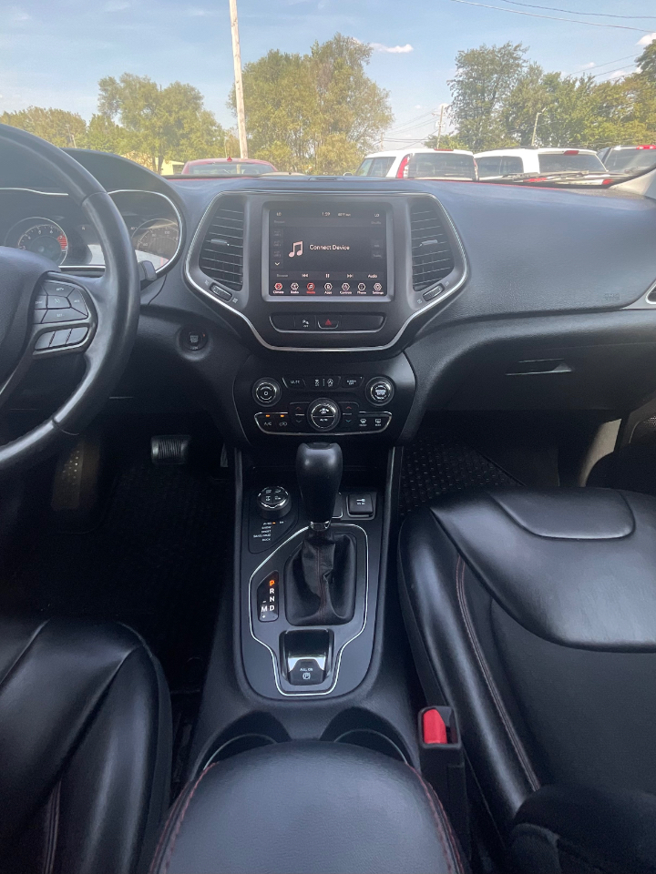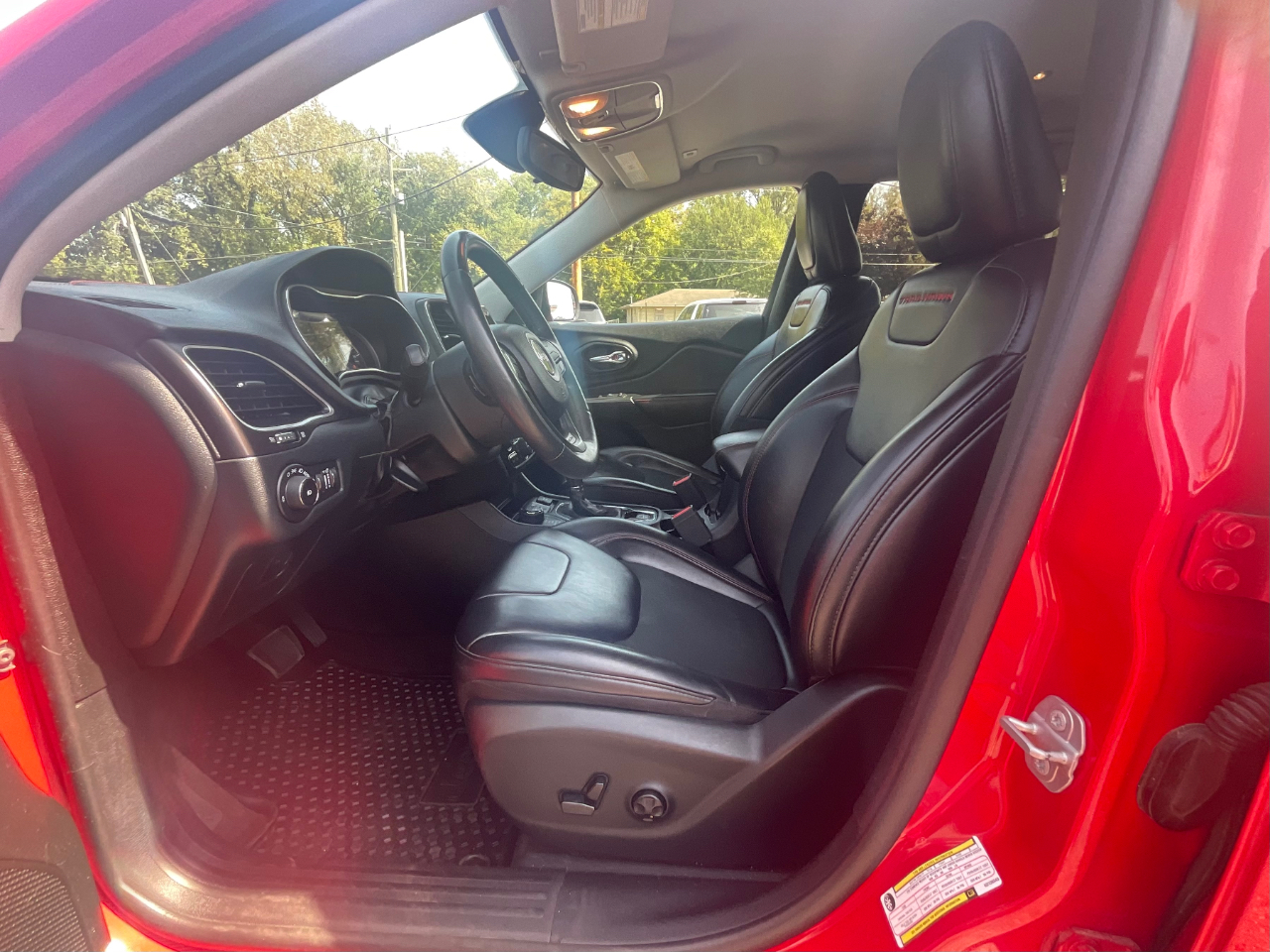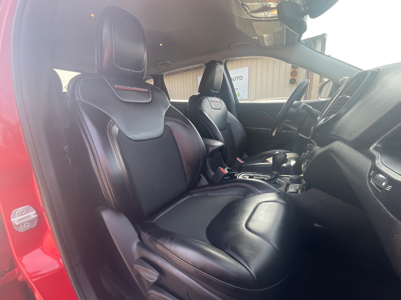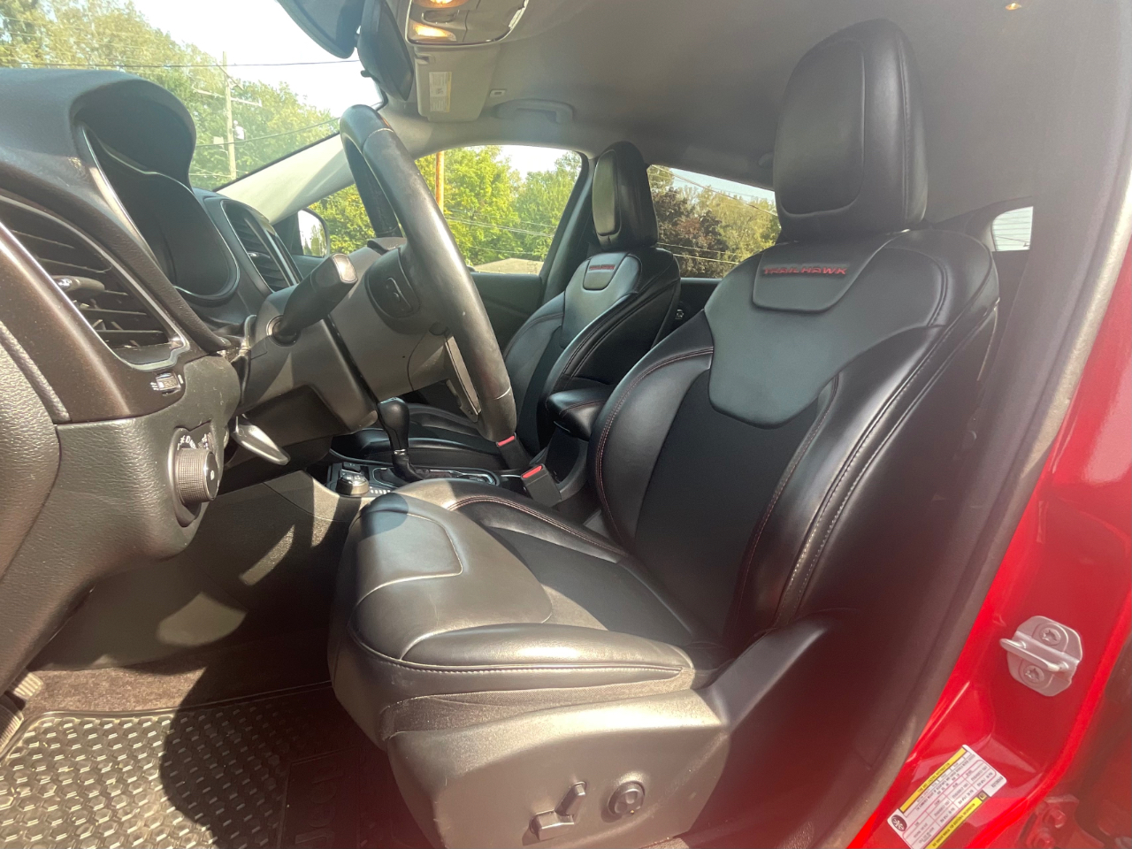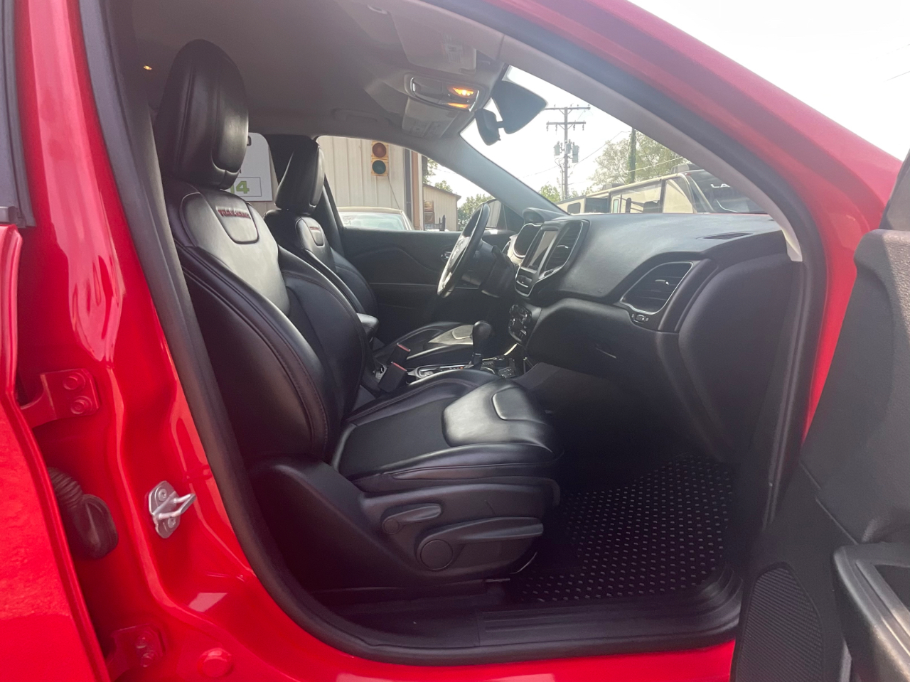 This eye-catching red Jeep Cherokee Trailhawk is in PERFECT condition!!! Leather seats! This SUV is 4WD and has an automatic transmission! Automatic start will warm up or cool down the vehicle before you get in!!! Press to start button! Backup camera and Parking assist provides a clear view of the area behind you and alerts you when an obstacle is in your way!! Heated seats and steering wheel! Dual climate control so both you and your passengers can stay comfortable in separate temperatures!!! Audio and cruise controls on the steering wheel! Touchscreen radio with Bluetooth audio, an auxiliary input, and USB ports so you can easily connect your phone to enjoy your favorite songs!! Multiple power outlets! Voice recognition allows you to change the audio source or adjust the temperature using only voice commands!!! Compass! Different driving modes like sport, snow, sand/mud, and rock adjust the vehicles performance to match any road conditions!! Floor mats! Trunk space to utilize during your next adventure!!!
