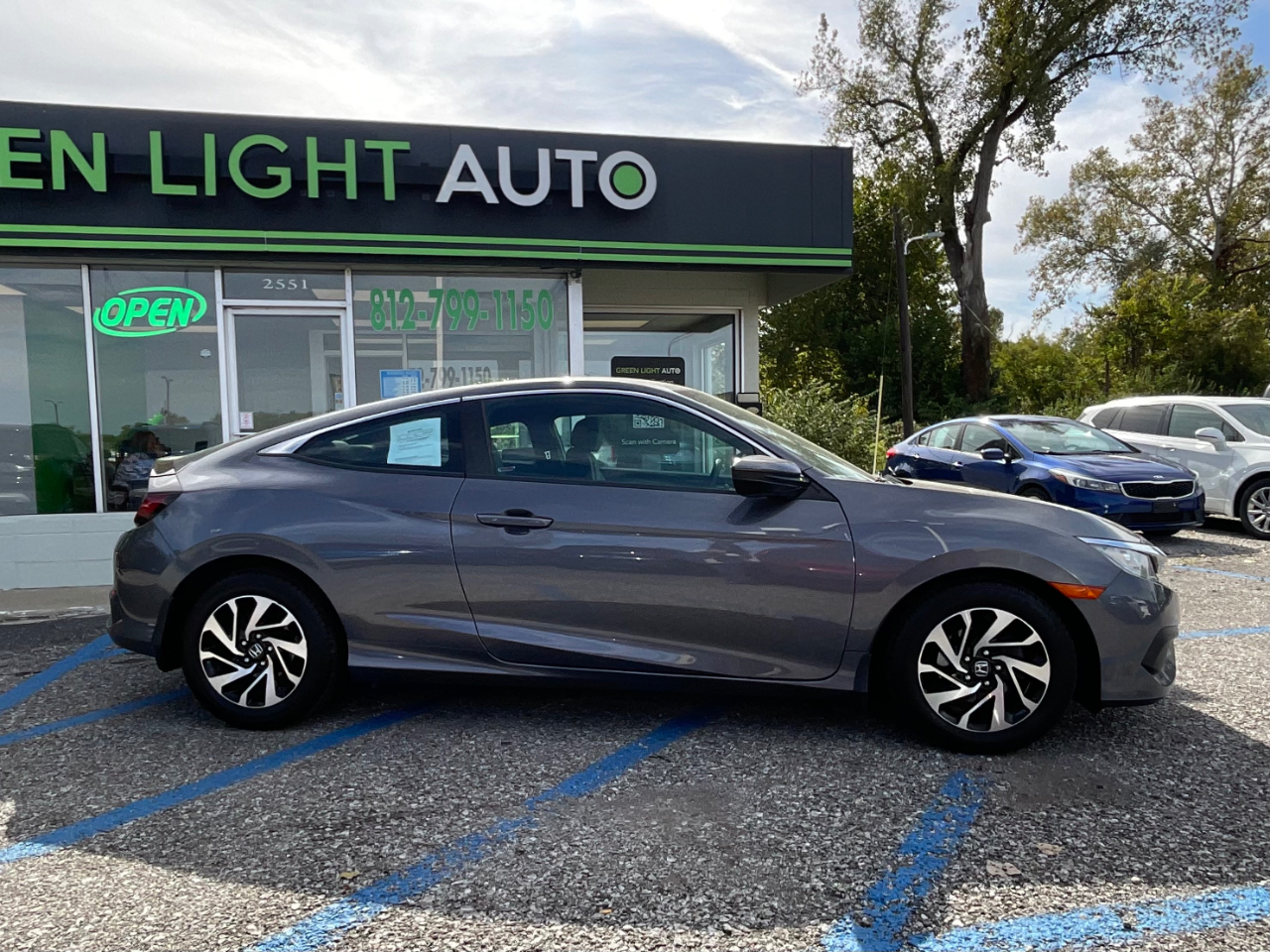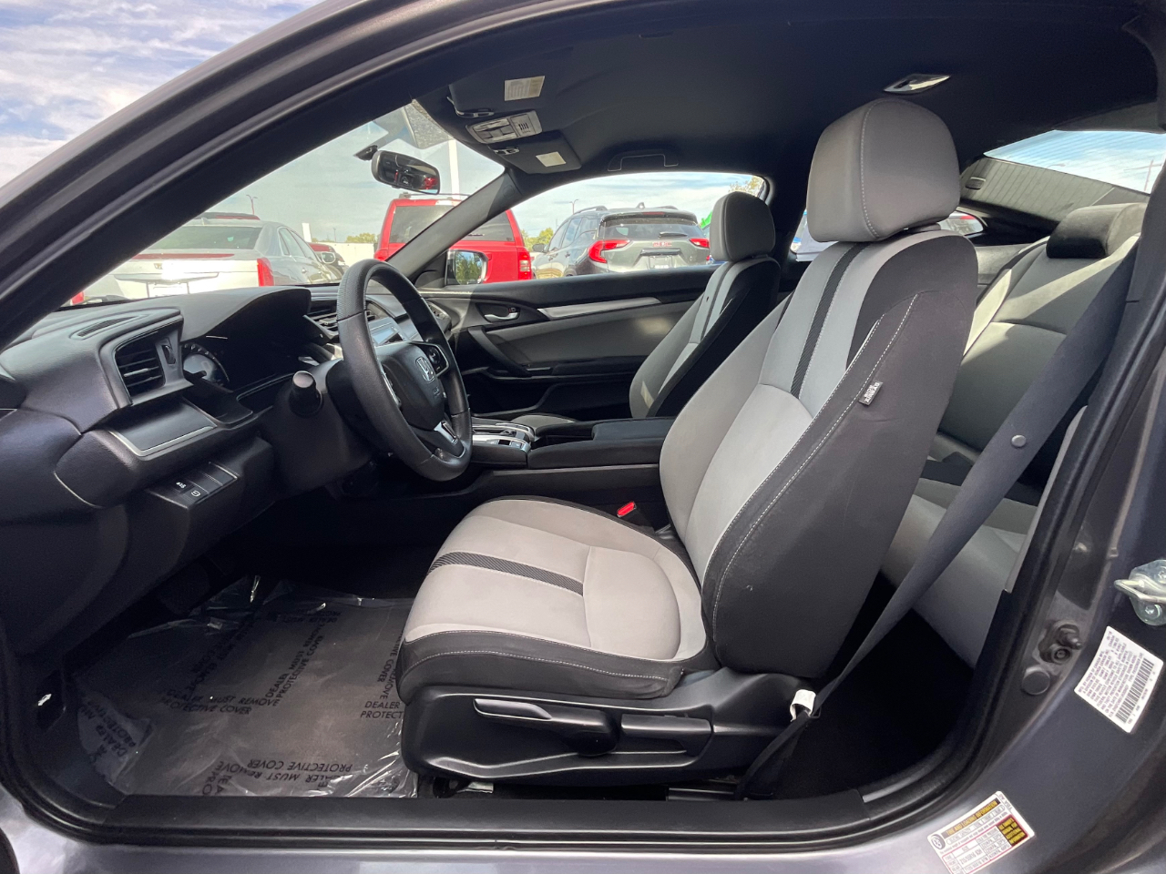 This grey Honda Civic LX is in EXCELLENT condition!!! Cloth seats! This coupe is FWD and has an automatic transmission! Backup camera provides a clear view of the area behind you so you can stay safe and aware of your surroundings while reversing!!! Eco mode! Wallpaper display lets you customize the background image on the display screen to any picture you want to make the ride more personalized!! Audio and cruise controls on the steering wheel! Radio with Bluetooth audio and an USB port so you can easily connect your phone and jam out to your favorite songs!!! Convenient digital speedometer display! Voice recognition allows you to make phone calls and control phone functions using only voice commands!! Trunk button! Power outlet to charge your electronic devices!!!