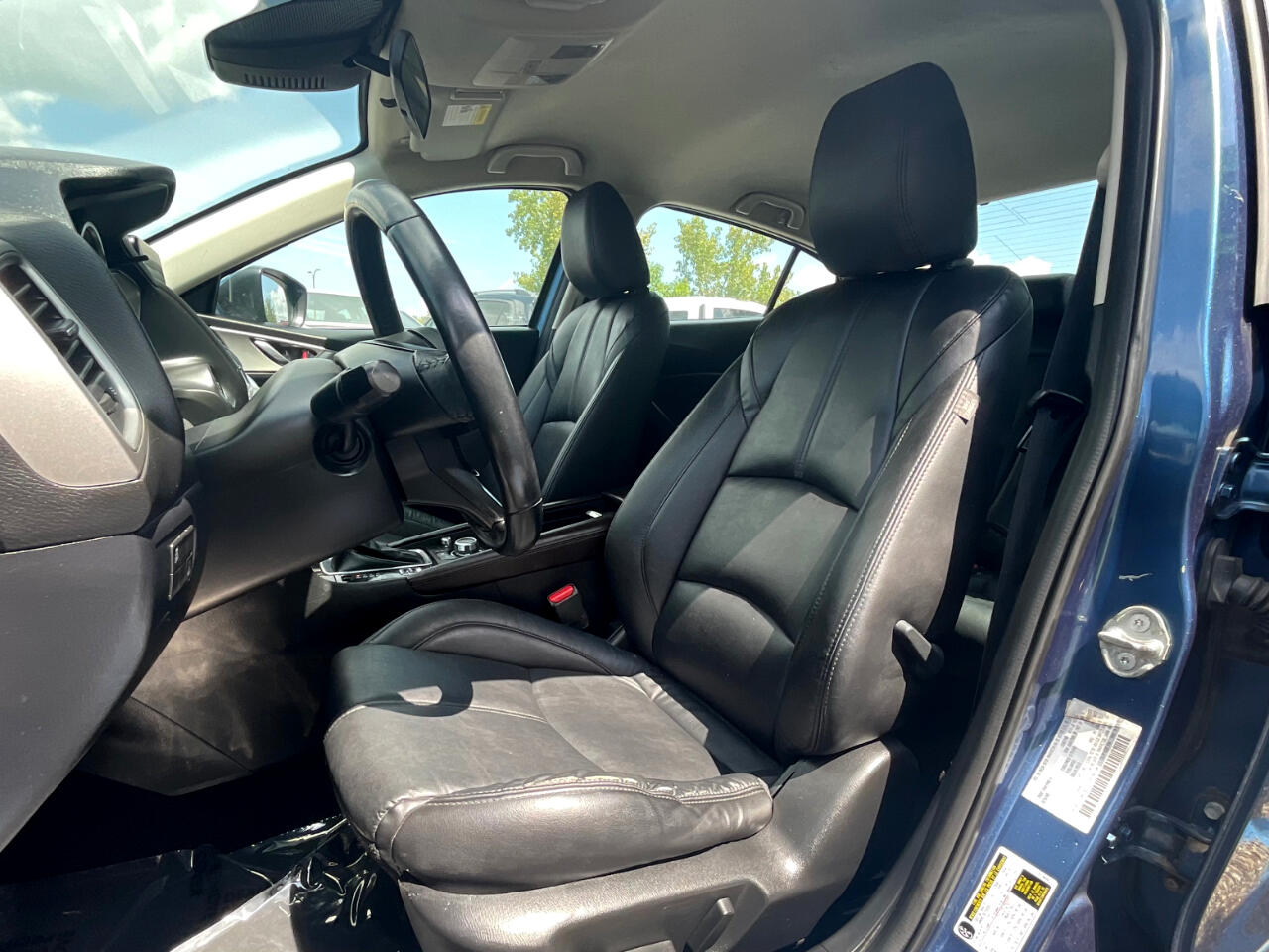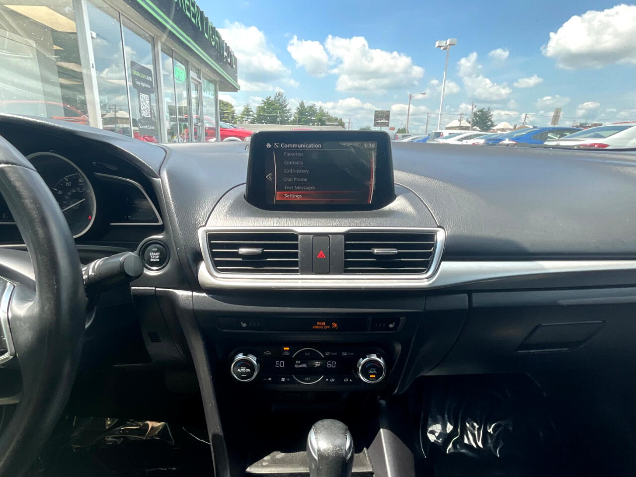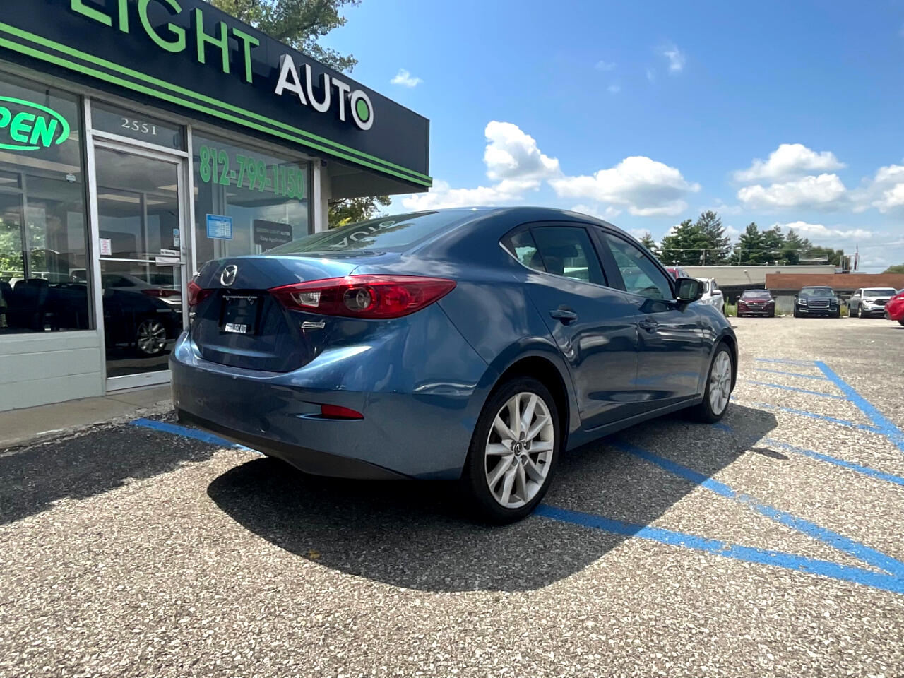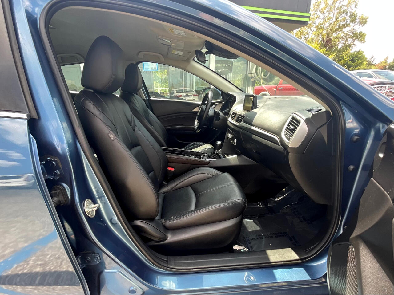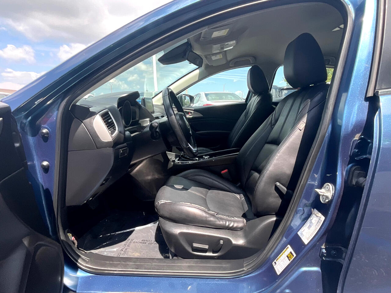 This light blue Mazda MAZDA3 i Touring is in GREAT condition!!! Leather seats! This sedan is FWD and has an automatic transmission! Traffic map will help you stay updated on traffic conditions during your drive!!! Press to start button! Backup camera provides a clear view of the area behind your vehicle so you can stay safe while reversing!! Sport mode! Dual climate control so both you and your passengers can enjoy your own separate temperatures!! Heated seats! Radio with Bluetooth audio, an auxiliary input, and USB ports allows you to connect your phone and enjoy your favorite playlists!!! Pandora, Stitcher, and aha music apps! Voice recognition enables hands-free controls of phone calls and music sources!! SD card input! Trunk button!