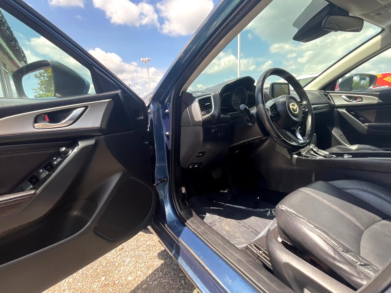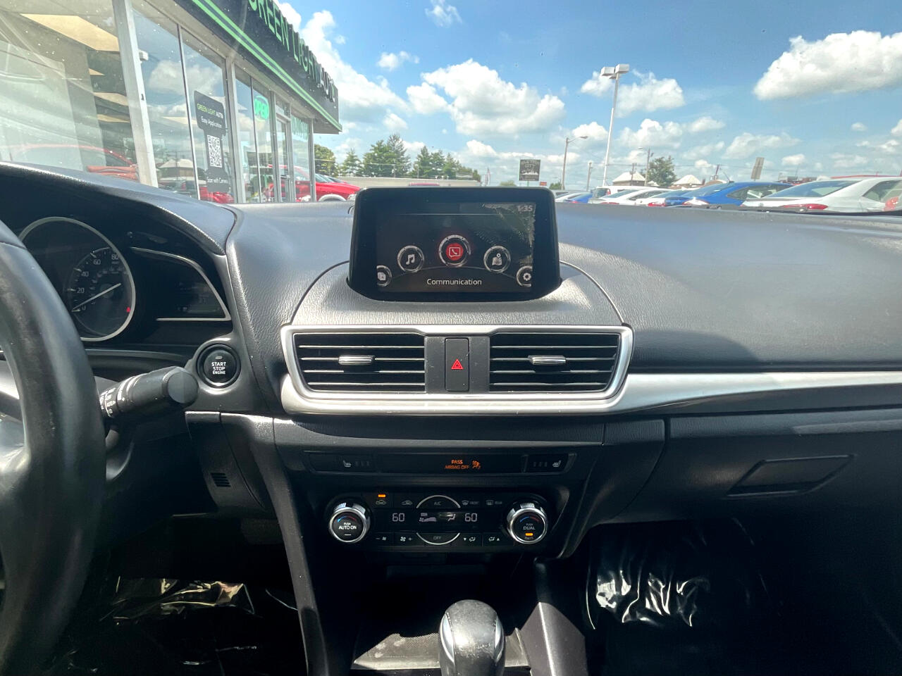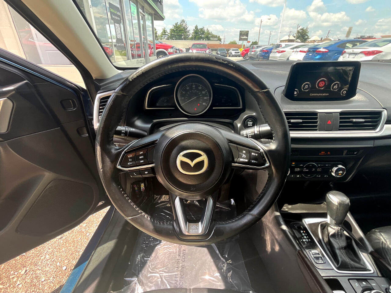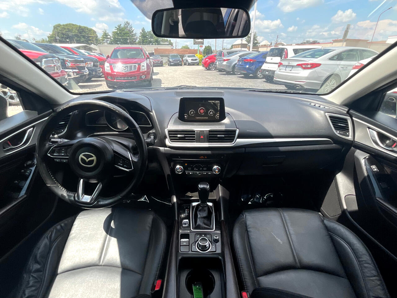 This light blue Mazda MAZDA3 i Touring is in GREAT condition!!! Leather seats! This sedan is FWD and has an automatic transmission! Traffic map will help you stay updated on traffic conditions during your drive!!! Press to start button! Backup camera provides a clear view of the area behind your vehicle so you can stay safe while reversing!! Sport mode! Dual climate control so both you and your passengers can enjoy your own separate temperatures!! Heated seats! Radio with Bluetooth audio, an auxiliary input, and USB ports allows you to connect your phone and enjoy your favorite playlists!!! Pandora, Stitcher, and aha music apps! Voice recognition enables hands-free controls of phone calls and music sources!! SD card input! Trunk button!
