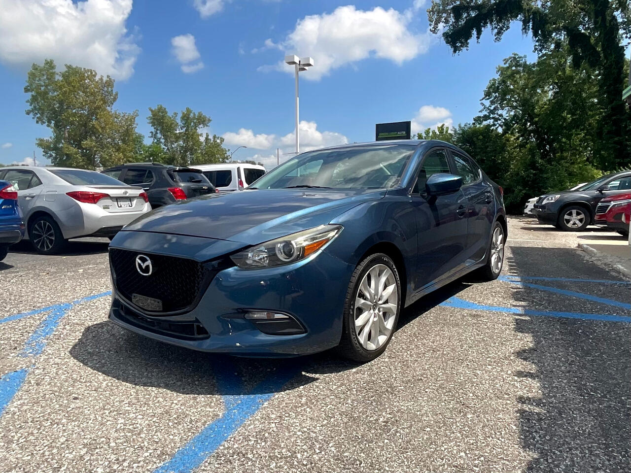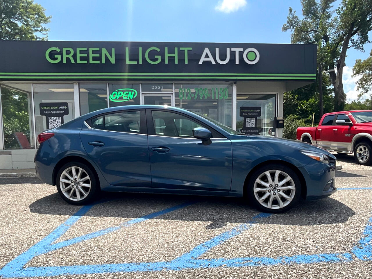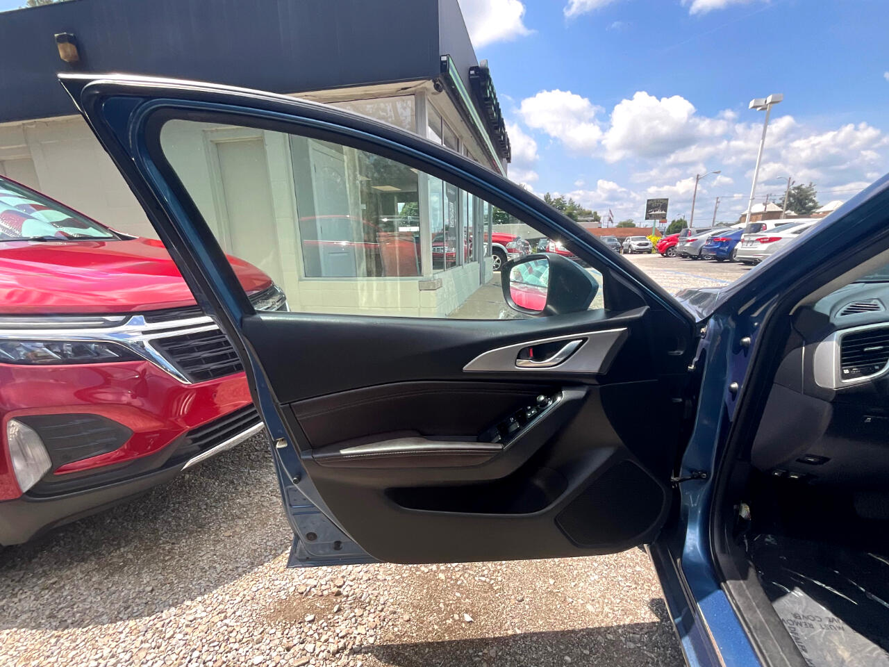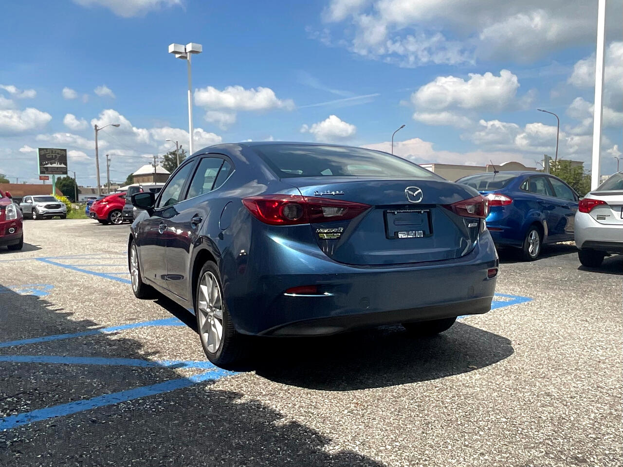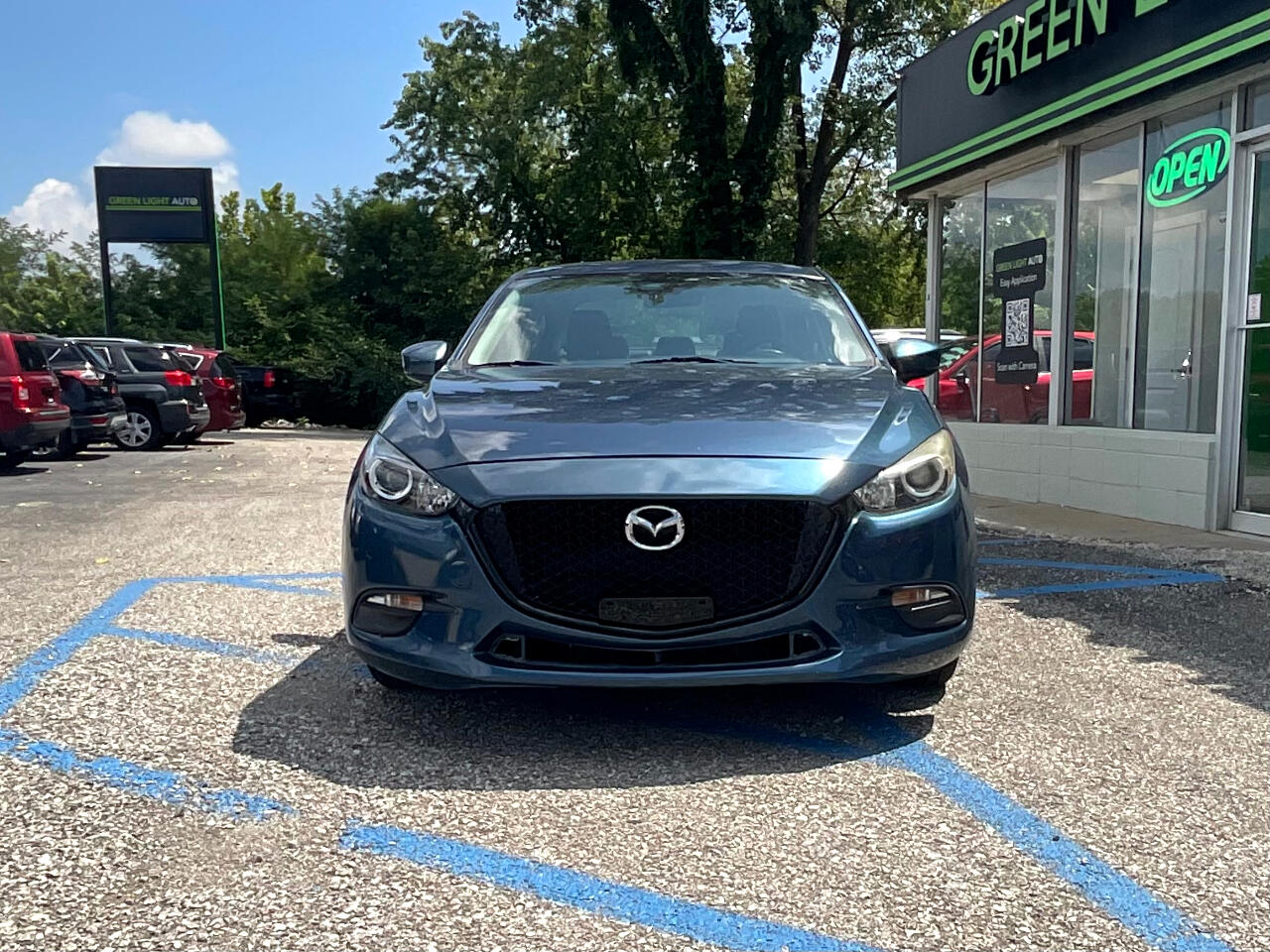 This light blue Mazda MAZDA3 i Touring is in GREAT condition!!! Leather seats! This sedan is FWD and has an automatic transmission! Traffic map will help you stay updated on traffic conditions during your drive!!! Press to start button! Backup camera provides a clear view of the area behind your vehicle so you can stay safe while reversing!! Sport mode! Dual climate control so both you and your passengers can enjoy your own separate temperatures!! Heated seats! Radio with Bluetooth audio, an auxiliary input, and USB ports allows you to connect your phone and enjoy your favorite playlists!!! Pandora, Stitcher, and aha music apps! Voice recognition enables hands-free controls of phone calls and music sources!! SD card input! Trunk button!