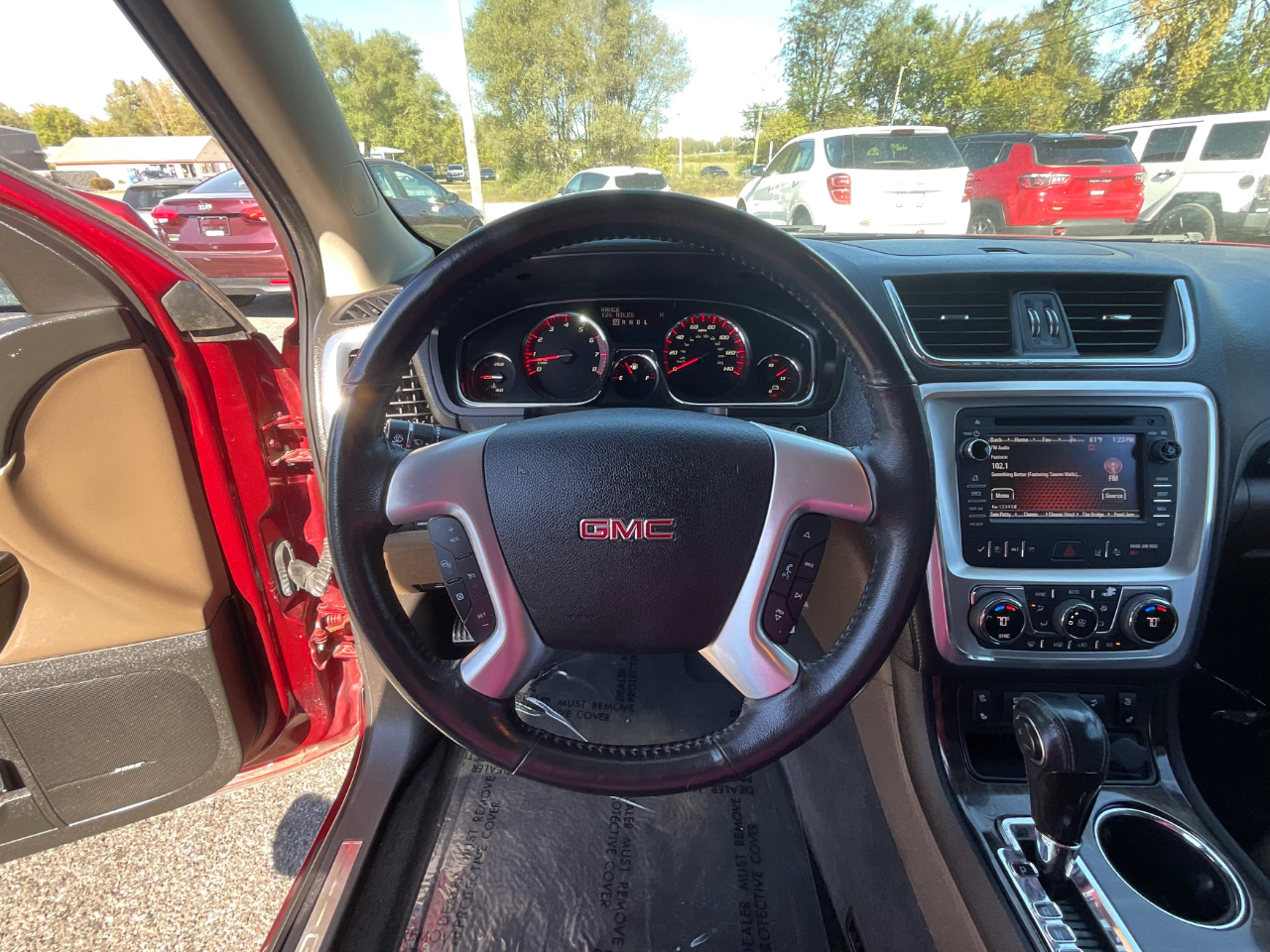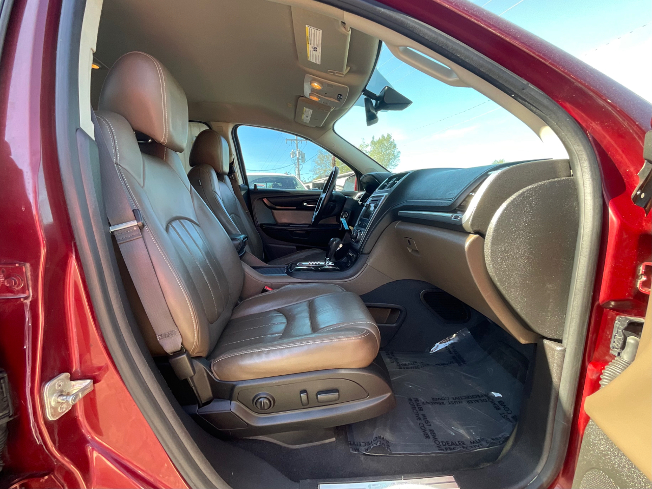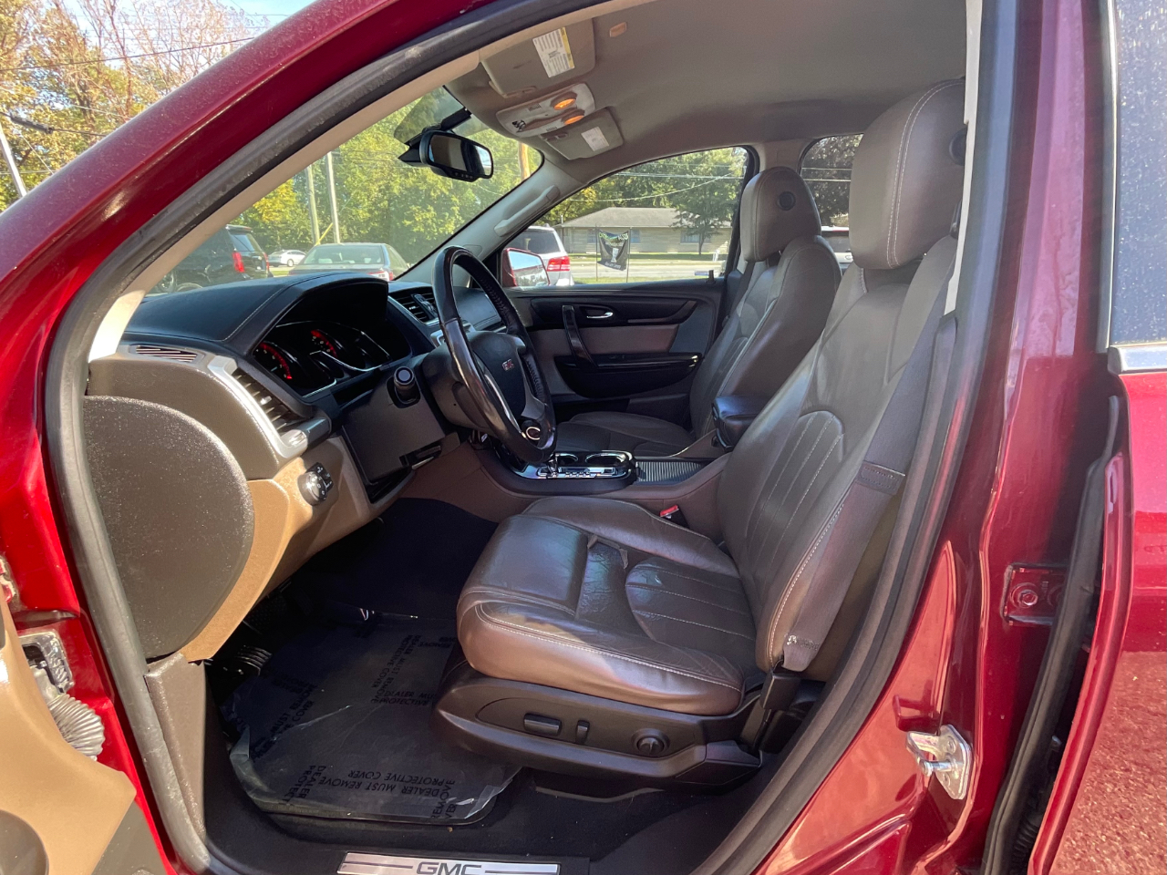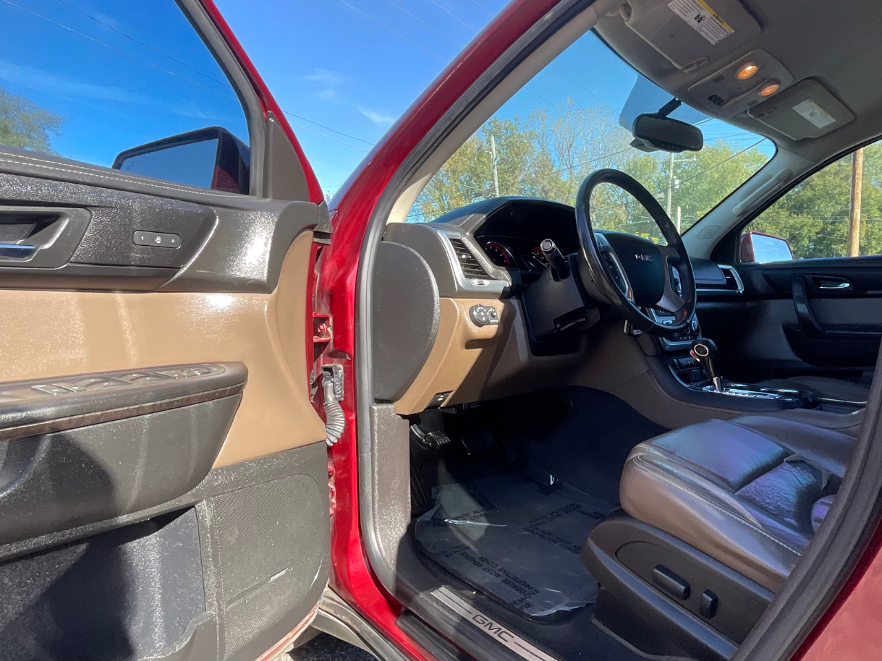 This gorgeous red GMC Acadia SLT is in GREAT condition!!! Leather seats! This SUV is FWD and has an automatic transmission! Third row seating provides extra seating space so that more friends and family can come along for the ride!!! Backup camera! Blind spot monitors enhance safety by alerting you to vehicles that are in those hard-to-see areas!! Heated and cooled seats! Navigation system will help find the fastest route to your next destination!!! Dual climate control! Touchscreen radio with Bluetooth audio, SiriusXM, an auxiliary input, a CD player, and an USB port so you can easily enjoy your favorite songs anyway you’d like!! Pandora and Stitcher music apps! Voice recognition enables hands-free control of phone and audio functions!!! Heated steering wheel! Lane departure alert prevents accidents by warning you when the vehicle begins to drift out of its lane without signaling!! Forward collision warning! Dashboard storage compartment offers extra room to neatly store your belongings in!!! Trailer hitch! Plenty of trunk space to utilize during your daily activities!! Automatic tailgate button!